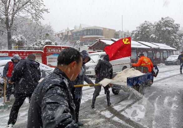 太平社區(qū):黨旗迎風(fēng)雪 清掃保平安