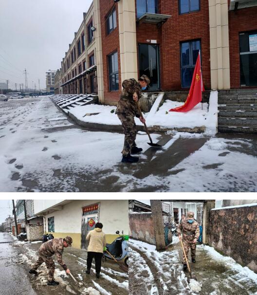 清晨,佘紅健就和民兵營的其他戰(zhàn)友、社區(qū)工作人員們一起拿著鐵鍬出門了。他們訓(xùn)練有素、分工有序、協(xié)同合作,將轄區(qū)內(nèi)主干道上的積雪鏟、掃、堆到路邊,清除出干凈的道路。零下的溫度里,佘紅健手凍得通紅,臉上冒出了細(xì)密的汗珠,但依然堅持不懈地投身于鏟雪工作中。主干道,退役軍人汪洪沅家門口、殘疾人家門口、孤寡老人困難戶家門口,都有佘紅健辛勤忙碌,只為了幫助他們打通家門口的道路,讓他們能夠平安出行的身影。