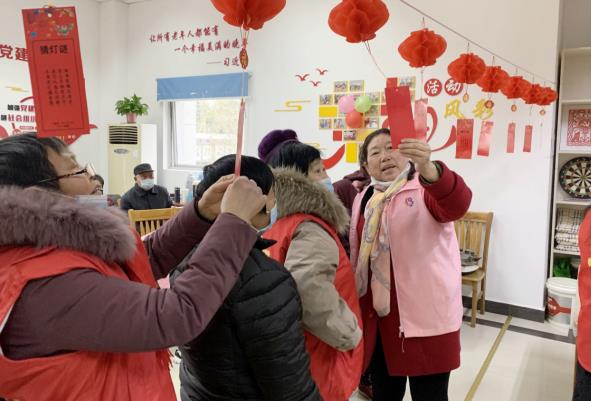 大紅燈籠高高掛,工作人員精心收集了多條燈謎,內(nèi)容豐富,趣味盎然,既具娛樂性,又兼具知識性。猜燈謎時,大家積極響應(yīng),有的獨自思考,有的三五成群商量探討,來回地在燈謎前醞釀尋找燈謎謎底的方法,其樂融融。