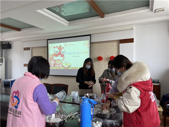 活動現場,工作人員將提前準備好的食材端上桌,大家有說有笑開始包湯圓,揉面的揉面,搓、捏、按、團,一塊塊白白的糯米面在大家手中團成一個球……一會功夫,一個個白胖的湯圓擺在了大家的面前。