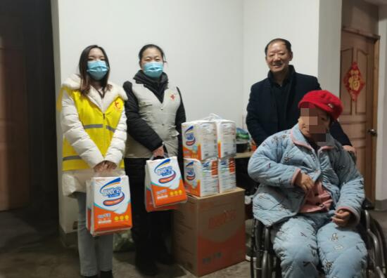 當(dāng)天下午,堯安新村社區(qū)居家養(yǎng)老服務(wù)站與時(shí)間銀行志愿者來(lái)到家住堯安新村的辛阿姨家。辛阿姨幾年前因?yàn)槟X溢血導(dǎo)致下半身癱瘓,只能在輪椅上生活,大小便失禁,日常生活起居都要家里人照顧。堯安新村社區(qū)了解到她家里的情況后,為她送去了在“九九公益日”中籌集捐款購(gòu)買(mǎi)的尿不濕和護(hù)理墊,既減輕她家庭的負(fù)擔(dān),也讓辛阿姨能生活得更加方便衛(wèi)生,過(guò)上更加有尊嚴(yán)地生活。此次活動(dòng),堯安新村社區(qū)殘協(xié)還陸續(xù)走訪慰問(wèn)其他困難老人和殘疾人把節(jié)日的關(guān)懷送去他們家中。