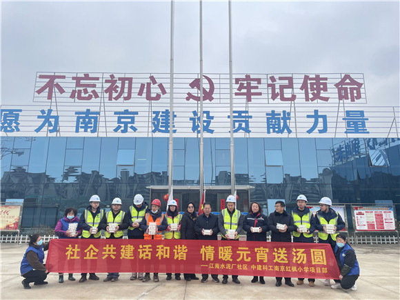 南京市棲霞區(qū)棲霞街道江南廠社區(qū)黨支部組織退休老黨員和棲霞街道總工會到工地舉辦共建活動。在元宵節(jié)夜晚,一家人齊樂融融的聚在桌旁吃飯共看明月是所有中國人都盼望的場景,考慮到廣大民工朋友無法回家過節(jié),2月15日社區(qū)聯合街道總工會在建設者之家舉辦了“黨建共建同心圓,共同歡度鬧元宵”活動,邀請周邊工地民工參與。