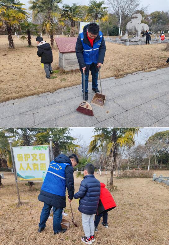 活動中,城市治理志愿者和孩子們不畏嚴寒,他們干勁十足,紛紛拿起笤帚等工具積極行動,重點對蕭恢墓石刻、十月村毛主席雕像周圍散落的塑料袋、飲料盒、煙頭等生活垃圾進行撿拾,本次共清理出各類垃圾5袋,經(jīng)過清理,兩處文物周邊環(huán)境得到了明顯改善。