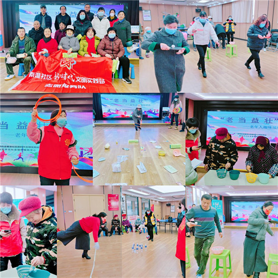 為豐富社區(qū)老年人生活,為老年人傳輸健康生活的理念,共建健康和諧社區(qū),2月25日,南京市江寧區(qū)秣陵街道秦淮社區(qū)新時代文明實踐站開展“老當(dāng)益壯”老年人趣味運動會。