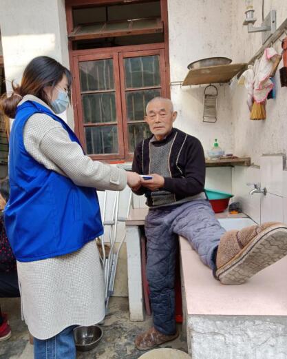 網(wǎng)格區(qū)內(nèi)殘疾人數(shù)量不少,其中一位村民腿部殘疾,無(wú)法自主行走,老人平日里和藹可親,待吳慧很好。吳慧便問(wèn)清了老人的狀況,尋求醫(yī)生的幫助,學(xué)會(huì)了很多適合腿部康復(fù)的按摩穴位和按摩小技巧。吳慧還帶老人一起就醫(yī),平時(shí)經(jīng)??赐先耍o老人送生活必需品,可以說(shuō)是做到了無(wú)微不至的關(guān)懷。