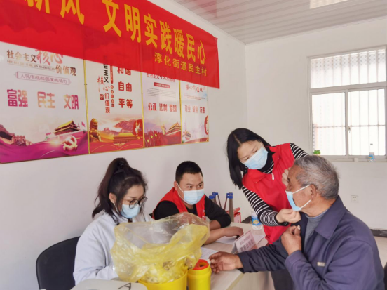 活動開始,社區(qū)網(wǎng)格員和志愿者宣傳健康檢查活動,吸引了很多老人前來參與。在志愿者的組織下,老人依次排隊進行檢查,包括量血壓、測血糖、疾病問診等項目。