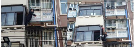 由于此次清理工作存在難度,為將墻體上的廣告徹底清除,城管隊(duì)員聯(lián)合城市治理公眾委員研究后,決定挨家挨戶上門溝通,借助居民家的陽臺(tái),對(duì)外墻上的廣告進(jìn)行清理。居民們聽聞紛紛打開方便之門,積極配合隊(duì)員開展清理工作。