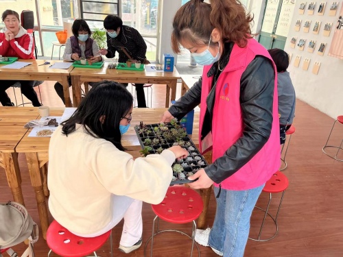 最后園藝?yán)蠋熛虼蠹医榻B了多肉植物的形態(tài)特征、主要品種、生長(zhǎng)特點(diǎn)以及多肉的日常養(yǎng)護(hù)方法,并現(xiàn)場(chǎng)示范了正確栽種多肉綠植的方法。女同胞們認(rèn)真聆聽,仔細(xì)觀察,在動(dòng)手種植環(huán)節(jié),大家變身妙手花匠,小心翼翼地找準(zhǔn)位、扎穩(wěn)根、埋好土、植多肉,在動(dòng)手的過(guò)程中展示出豐富的創(chuàng)造力,打造出各具特色的“綠色盆景”。
