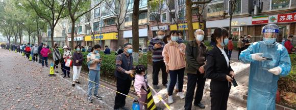 登記信息、協(xié)調(diào)現(xiàn)場(chǎng)秩序、安排人員入場(chǎng)檢測(cè)……在核酸檢測(cè)現(xiàn)場(chǎng),工作人員們穿梭于長(zhǎng)長(zhǎng)的隊(duì)伍中,進(jìn)行著一系列緊張有序地工作。居民們也很配合此次核酸檢測(cè)各項(xiàng)工作,自覺(jué)按照一米線(xiàn)排隊(duì),保持一定的距離。一次次重復(fù)的話(huà)語(yǔ),一次次相同的工作,他們不怕辛苦,一心堅(jiān)守,將檢測(cè)關(guān)口前移、服務(wù)前移,體現(xiàn)了疫情防控工作人員的責(zé)任與擔(dān)當(dāng)。