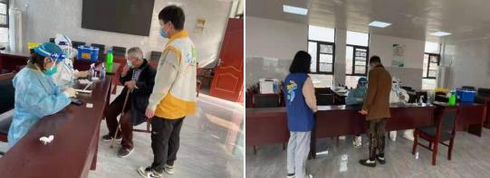 西城村在聯(lián)系好醫(yī)護(hù)人員、安排好場地后,網(wǎng)格員在微信群中通知村民們核酸檢測的時間、地點,要求大家?guī)Ш蒙矸葑C或準(zhǔn)備好身份碼前往采樣點,戴好口罩,保持一米距離。巾幗志愿者、計生協(xié)志愿者和青年志愿者攜手,助力核酸檢測,為村民測量體溫,安排他們有序排隊,遇到村民有疑問的,為他們答疑解惑??吹揭恍├先送饶_不便,網(wǎng)格員和志愿者也會上前攙扶,為他們提供力所能及的幫助。