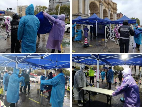 自接到開(kāi)展全民核酸檢測(cè)的通知以后,秣陵街道下轄社區(qū)的工作人員緊急布置起核酸檢測(cè)點(diǎn),不顧近日倒春寒下的氣溫驟降、陰雨綿綿,搭起帳篷、布置桌椅、拉好警戒線、張貼一米線,網(wǎng)格員們?cè)谖⑿湃褐邢蚓用癜l(fā)送核酸檢測(cè)地點(diǎn)、時(shí)間點(diǎn)的通知。
