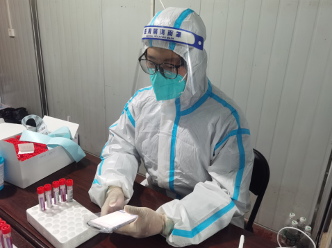 陳家鑫堅守核酸采樣信息錄入點位
