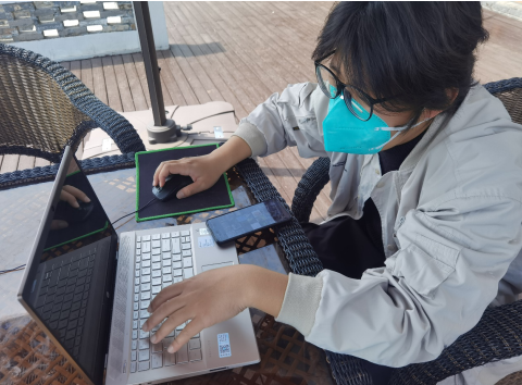 陳家鑫利用輪休時間仍認真工作