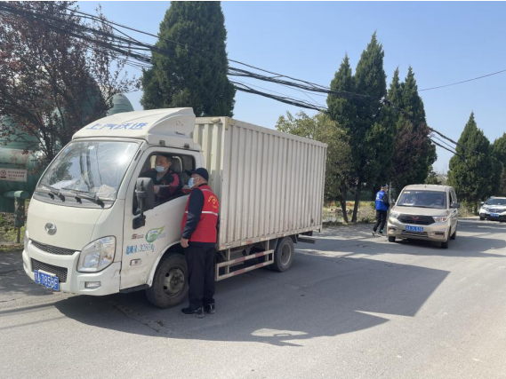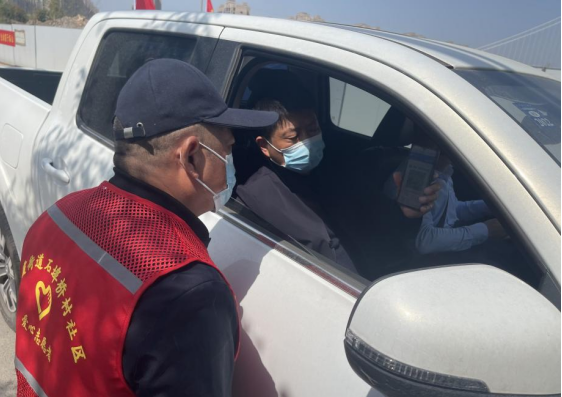 疫情防控僅要對(duì)準(zhǔn)社區(qū)內(nèi)部居民,還要注重防范外來(lái)車(chē)輛,石埠橋村社區(qū)設(shè)置檢查點(diǎn)主要負(fù)責(zé)對(duì)外地貨車(chē)進(jìn)行查驗(yàn),“內(nèi)防感染,外防輸入;內(nèi)外兼顧,雙路并行”是石埠橋村社區(qū)防控疫情的有效辦法。退伍軍人志愿者從早到晚守在檢查點(diǎn),分兩班倒,查驗(yàn)司機(jī)及乘客的蘇康碼、行程碼和48小時(shí)核酸檢測(cè)報(bào)告。