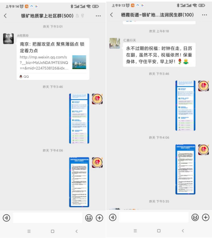 在銀礦地質(zhì)社區(qū)“掌上云社區(qū)”群里,社區(qū)志愿者及時篩選推送疫情防控科普文章,居民通過閱讀推送的信息報道,了解防疫知識和防疫政策。同時,志愿者還通過短信和微信地方式向居民宣傳健康飲食知識,告訴居民如何提高對病毒的抵抗能力。在線上學習過程中,社區(qū)志愿者還倡議居民在日常居家中做到打疫苗,戴口罩,勤洗手,多通風,少聚集,不隱瞞,少出行,莫恐慌,多鍛煉。