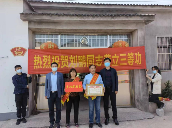 為在轄區(qū)內(nèi)營(yíng)造擁軍優(yōu)屬良好氛圍,4月19日,南京市江寧區(qū)退役軍人事務(wù)局副局郝奎與江寧區(qū)湖熟街道人民武裝部長(zhǎng)李韋來到晶明村,為現(xiàn)役軍人劉鵬的家屬送去立功喜報(bào)。