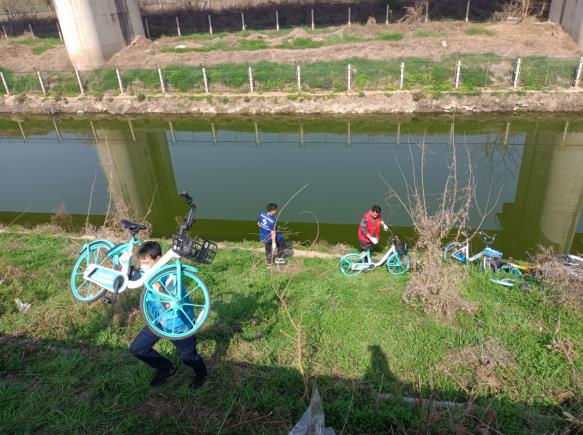 活動現(xiàn)場,志愿者們兵分兩組。一組負責(zé)清撿河堤沿線垃圾,他們手持夾鉗、垃圾袋,將草叢內(nèi)的泡沫盒、飲料瓶、包裝袋、白色垃圾等一一“收入囊中”;另一組則負責(zé)清理河岸堆放的共享單車,他們通力協(xié)作,集中清理共享單車20余輛。一個多小時的勞動過程中,志愿者們不怕臟、不怕累,樂在其中,充分展示了甘于奉獻、積極向上的精神風(fēng)貌。一番努力下,堤岸環(huán)境變得更加干凈清爽,河岸面貌煥然一新。
