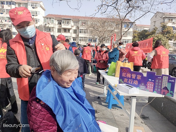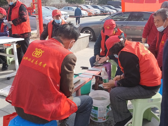 居民黨員志愿者朱先貴帶領(lǐng)著3名有著理發(fā)專長的鄰居,為前來現(xiàn)場的老人們理發(fā),忙活了一上午大家連口水都沒有來得及喝,服務(wù)了近50多名居民;居民王師傅看到磨刀區(qū)域的服務(wù)特別火熱,臨時(shí)申請加入志愿服務(wù)隊(duì)伍,為大家做好后勤服務(wù)工作;由于社區(qū)老年居民居多,健康義診區(qū)域的量血壓、測血糖等服務(wù),也備受大家的歡迎。