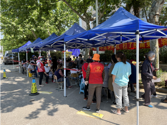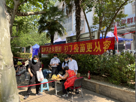 5月3日下午,根據(jù)馬群街道“五一”期間在果場社區(qū)辦公點(diǎn)門口開展第一階段的專車流動(dòng)疫苗接種工作安排,南京市棲霞區(qū)馬群街道果場社區(qū)依托社區(qū)新時(shí)代文明實(shí)踐站在社區(qū)辦公點(diǎn)門口開展“最美不過夕陽紅,打了疫苗更從容”主題疫苗接種進(jìn)社區(qū)的志愿服務(wù)活動(dòng)。