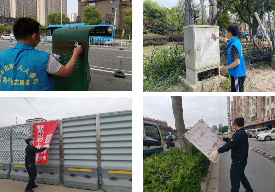 同時,為了做好創(chuàng)文明典范城市工作,隊員積極聯(lián)合城市治理志愿者對轄區(qū)內(nèi)違規(guī)廣告進(jìn)行整治。巡查過程中,發(fā)現(xiàn)“牛皮癬”、經(jīng)營戶私自設(shè)廣告牌、主干道及工地圍擋上的破損公益廣告牌匾時,第一時間進(jìn)行清理拆卸,消除安全隱患、恢復(fù)潔凈市貌。