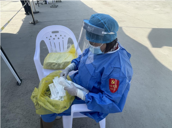 蔣婷珍退休之前是醫(yī)院的主治醫(yī)生,她在醫(yī)療衛(wèi)生系統(tǒng)工作多年,擁有豐富的醫(yī)療工作經(jīng)驗(yàn),疫情伊始她便報(bào)名參加社區(qū)抗疫工作,希望繼續(xù)發(fā)揮余熱守護(hù)家園。