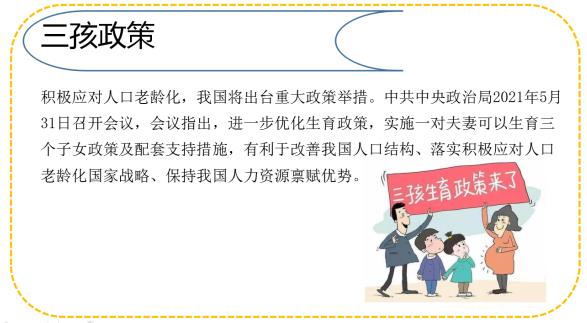 接著,社區(qū)志愿者給在場的居民解讀國家關(guān)于促進人口長期均衡發(fā)展方針、政策,并詳細講解了“三孩”生育政策內(nèi)容和意義及各項配套支持措施,同時鼓勵家人間交流決定,尊重當事人意見及考慮家庭實際條件。