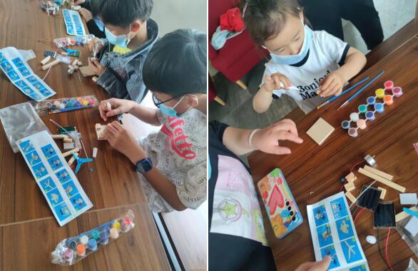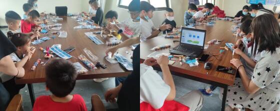 動手制作環(huán)節(jié),小朋友們在老師的指導(dǎo)下,一步一步拼接組裝太陽能風(fēng)扇。由于小白膠粘性比較低制作的時候很難將東西粘起來,小朋友們機智地改用了502膠水,最終一個個色彩繽紛的太陽能風(fēng)扇就制作完成了。
