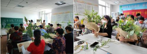 工作人員還向社區(qū)居民發(fā)放了蘋果葉、尤加利葉、黃金球、艾草等制作艾草花束的材料,并從花卉的擺放、顏色的搭配、花枝的修剪等方面進(jìn)行耐心細(xì)致地講解。大家心領(lǐng)神會(huì)后,發(fā)揮自己的想象力和創(chuàng)造力進(jìn)行創(chuàng)意制作。很快,一束束好看又能驅(qū)蟲辟邪的艾草花束被制作完成?;顒?dòng)最后,工作人員邀請(qǐng)參與活動(dòng)的居民分享艾草花束制作經(jīng)驗(yàn)并向居民送去了端午安康的美好祝福,大家紛紛表示這個(gè)端午很有“艾”。