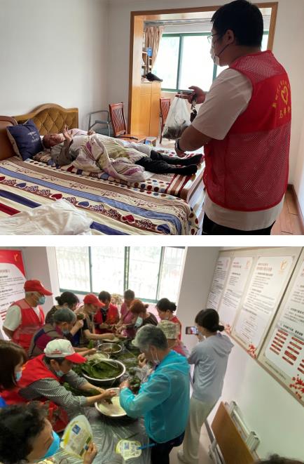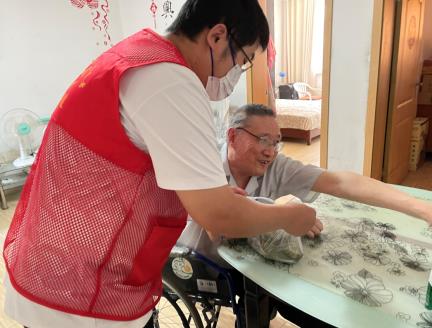 在百水家園社區(qū)養(yǎng)老服務(wù)站里,志愿者門為殘疾人朋友量血壓,和他們一起包粽子、做香袋。志愿者還為行動不便的殘疾人送去自己報的粽子,并送上節(jié)日問候和祝福。
