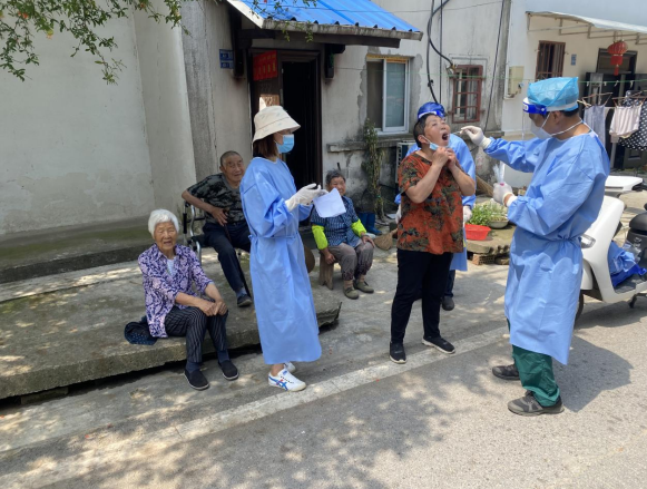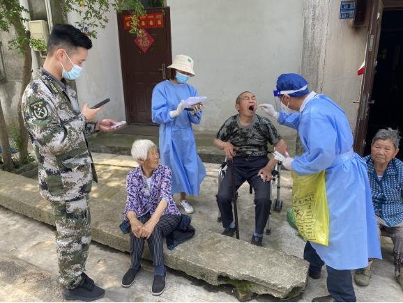 他們分工明確,通力合作,整個(gè)檢測(cè)環(huán)節(jié)有條不紊、進(jìn)展順利。先由服務(wù)站人員為被檢測(cè)者在“核酸檢測(cè)”APP中錄入身份信息,再由醫(yī)護(hù)人員竇志文進(jìn)行采樣,在采樣結(jié)束后,徐教姣則負(fù)責(zé)在信息表上做好記錄。被檢測(cè)的村民們紛紛贊揚(yáng)上門檢測(cè)的服務(wù)方式,村民表示:“我們年紀(jì)大了,行動(dòng)也慢,每次排隊(duì)做核酸真的很不方便,還好可以上門做核酸,給我們解決大了麻煩。”