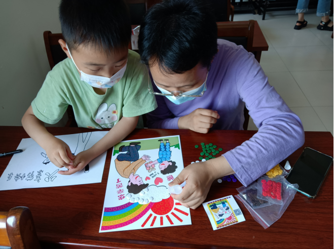 接著是做紐扣畫,用一個個五彩繽紛的紐扣組成獨特的繪畫,表達了他們對父親深深的愛,還培養(yǎng)孩子們動手能力,從小學會感恩。最后他們還為父親制作了節(jié)日祝福的賀卡,祝福父親開心幸福,永遠年輕。