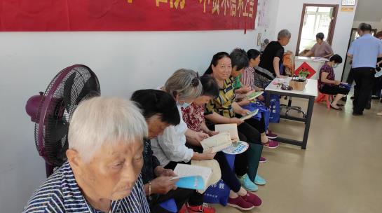 活動現(xiàn)場,殘疾人匯聚一堂,因有的殘疾人識字不多,還有的視力不好,便由殘協(xié)志愿者面對面朗讀幫助殘疾人了解書本中的內(nèi)容和知識,殘疾人員認(rèn)真聆聽。