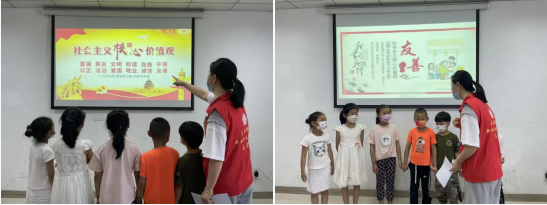 活動(dòng)現(xiàn)場(chǎng),志愿者為小朋友們進(jìn)行社會(huì)主義價(jià)值觀教育,著重像小朋友們介紹了友善這一概念。“友善,是社會(huì)的潤(rùn)滑劑,能夠讓人與人之間的關(guān)系和睦,減少很多摩擦和不必要的麻煩,有助于社會(huì)團(tuán)結(jié),有助于社會(huì)進(jìn)步。”在志愿者的講解下,小朋友們紛紛表示要將“友善”融入生活的方方面面。