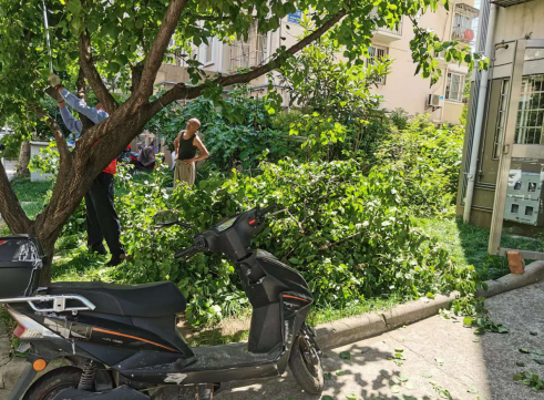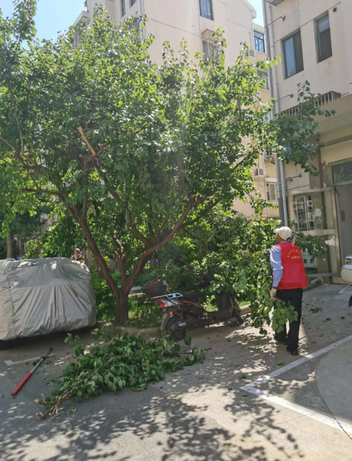 了解到群眾反映的情況后,社區(qū)組織工作人員第一時間現場查看,聽取居民意見,記錄需修剪樹木品種、數量、部位并研究解決方案。在確保道路安全和采光充足的前提下,改善通風透光性,工作人員借助園林機械等工具,對遮擋光線、存在安全隱患的枯枝進行修剪,并對現場及時進行清理歸堆。