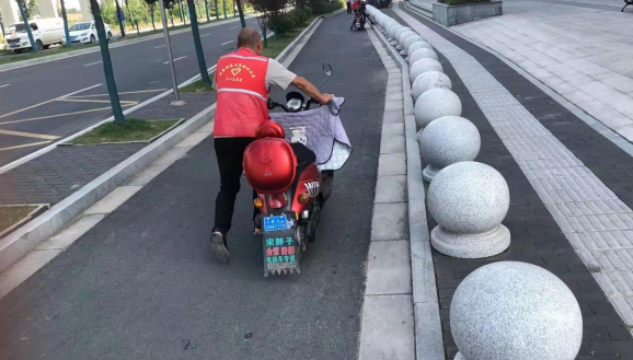 同時,新時代文明站志愿者聯(lián)合街道城管,每天進行巡查,一旦發(fā)現(xiàn)非機動車占用消防通道、擠占交通等現(xiàn)象時,便將非機動車停放到規(guī)定的停車位中。并對社區(qū)居民開展廣泛宣傳,引導居民從自身做起,規(guī)范停車、遵守交規(guī),如騎行電動車要上牌照、佩戴安全頭盔等,致力于提升居民的規(guī)范用車意識,從實際行動出發(fā),消除道路安全隱患。