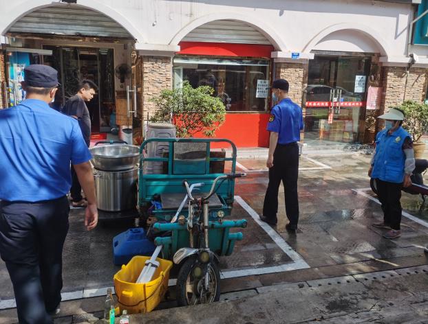 此次專項整治行動,各單位緊密配合,分工明確,首先綜合執(zhí)法大隊聯(lián)系商業(yè)街的物業(yè)管理方安排人員沖洗道路街面,清掃衛(wèi)生死角,城管中隊執(zhí)法隊員針對商戶占道經(jīng)營和門前亂堆放的情況,執(zhí)法人員對占道經(jīng)營的商販進(jìn)行了說服教育,指出占道經(jīng)營侵占公共空間,對市容環(huán)境的影響,并協(xié)助其將占道經(jīng)營物品退回店內(nèi),并專門針對餐飲戶垃圾分類工作向各經(jīng)營業(yè)主提出硬性要求,告知商戶發(fā)現(xiàn)一起垃圾混投或亂丟垃圾現(xiàn)象將直接予以處罰。對于部分不服從管理的商家,城管部門依法暫扣商戶亂堆的物品。通過此次專項整治行動,有效提升了我社區(qū)餐飲業(yè)街區(qū)的市容環(huán)境。