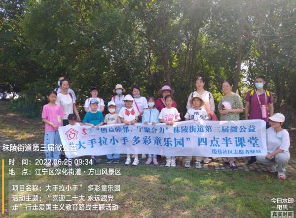 6月25日,南京市江寧區(qū)秣陵街道殷巷社區(qū)志愿者驛站以“喜迎二十大,童心永向黨”為主題,開展了一次人文地理和愛國主義教育線路的戶外行走活動。青少年們來到方山,以知行合一的方式迎接黨的二十大勝利召開。