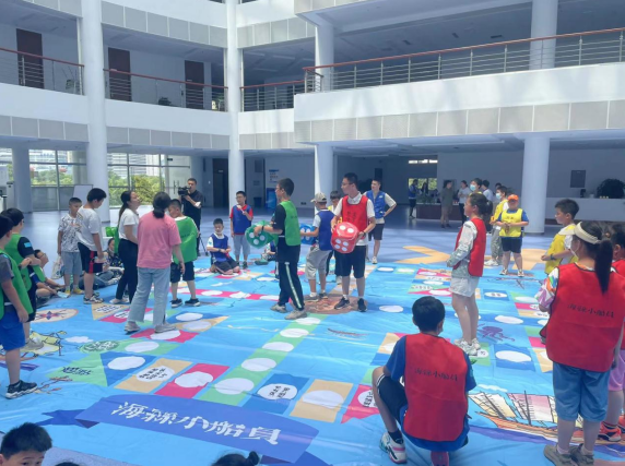 除了參觀學(xué)習(xí),夏令營還為孩子們安排了與海事相關(guān)的游戲環(huán)節(jié),大家紛紛化身小船員,站在飛行棋的墊子上、手拿骰子,分組玩游戲。游戲場上一片歡聲笑語,大家沉浸在游戲的快樂之中,在活動中認(rèn)識了彼此,拉近了距離。