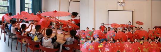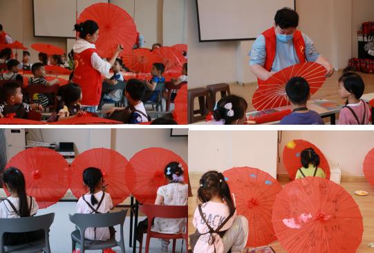 活動一開始,社區(qū)新時代文明實踐志愿者們便向在座的孩子們發(fā)放今天要用到的紅色紙傘以及畫筆,告訴大家需要繪畫的內(nèi)容。志愿者們先做示范,在紙傘上畫出海洋動物以及陸地動物的大致輪廓,讓有繪畫基礎(chǔ)的孩子們親自動手,并在一旁幫助指導(dǎo)。章魚、企鵝、熊貓、海草……在小朋友們的奇思妙想中,一個個栩栩如生的動物圖案躍然紙上,孩子們拿著顏料為自己的作品涂色,還相互之間交流討論,現(xiàn)場熱鬧非凡。完成后,志愿者們在紙傘上貼上五角星,引導(dǎo)孩子們樹立愛黨愛國的意識,努力成為一個新時代好少年。
