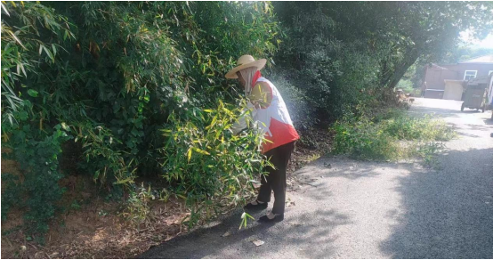 為了做好清理工作,志愿者們提前進(jìn)行了分組與規(guī)劃,明確每個(gè)人負(fù)責(zé)的片區(qū)及事項(xiàng)。烈烈驕陽下,志愿者戴著帽子、袖套,拿著掃帚、垃圾鉗、垃圾袋來到清理現(xiàn)場,有些志愿者兩兩配合,一個(gè)將道路上的樹葉清掃堆放至一旁,一個(gè)用鐵鍬鏟到垃圾袋里;有些志愿者則用園藝剪將生長過于茂密的樹枝、竹子修剪好,防止伸出路邊為村民出行帶來困擾;有的志愿者則拿著垃圾鉗,將植被中的垃圾夾起來丟進(jìn)垃圾袋中。面對夏季高溫的炙烤,志愿者們滿頭大汗,依然發(fā)揮著不怕苦不怕累的精神,手下不停的忙碌著,讓村里的環(huán)境得到了極大的改善,獲得了村民們的一致好評。
