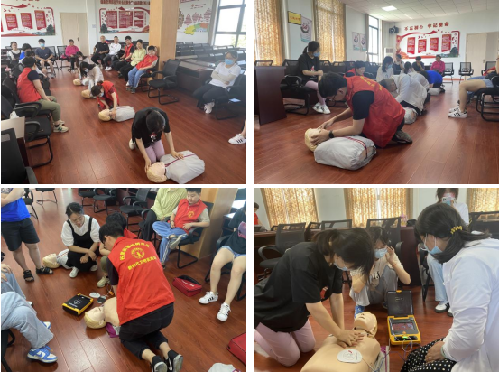 實(shí)踐是檢驗(yàn)真理的唯一標(biāo)準(zhǔn)。培訓(xùn)現(xiàn)場擺放了“復(fù)蘇安妮”和AED,通過對(duì)“安妮”模擬實(shí)施應(yīng)急救護(hù),老師耐心地教導(dǎo)大家如何找準(zhǔn)心臟位置、按壓幅度和頻次、口腔異物處理以及AED的正確使用。在模擬過程中,大家積極討論交流,向老師提問,力求做得更好,現(xiàn)場互動(dòng)感十足。