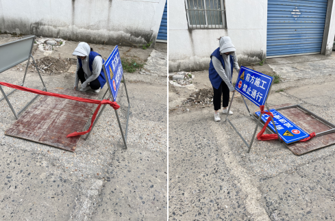 發(fā)現(xiàn)狀況后,張如玥立即聯(lián)系施工隊(duì),購(gòu)置新的井蓋。為避免路過的居民沒有注意導(dǎo)致受傷,張如玥找了一塊木板,將破洞覆蓋住,同時(shí)在旁邊放置“前方施工,禁止通行”的提醒指示牌,用紅線攔住,也防止孩子、動(dòng)物亂跑發(fā)生危險(xiǎn)。購(gòu)置好新的井蓋后,張如玥跟進(jìn)井蓋更換完畢,確保消除了此處安全隱患后,將障礙物再次移除。旁觀了這件事情的居民張先生說:“我們的網(wǎng)格員真的很負(fù)責(zé)、很細(xì)心,時(shí)刻把大家的安全放在第一位。”