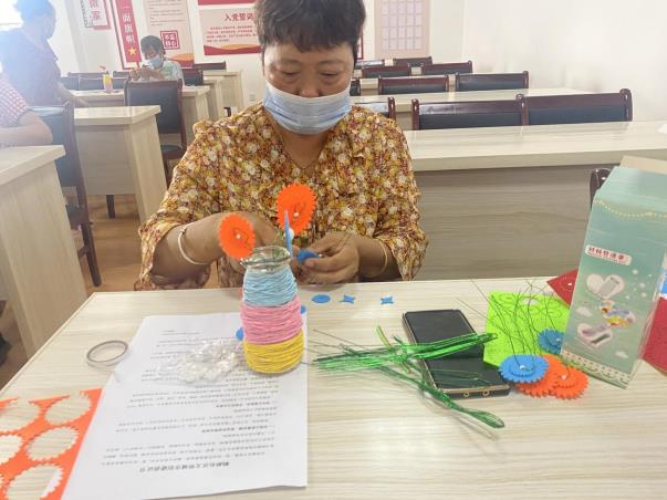 在討論到積極提倡低碳出行時,李阿姨開心地說到:“我家兒子最近剛買了一輛電動車,既省錢,又能減少尾氣排放,社區(qū)還在家門口安裝了充電樁,別提多方便了。”大家聽了紛紛表示認(rèn)可?;顒幼詈?,大家用平時收集到的玻璃瓶,以及廢棄的紐扣進(jìn)行紐扣花的制作,制作過程中,社區(qū)工作人員大概講解手工玻璃瓶步驟,大家充分發(fā)揮想象力,制造出了一個個妙趣橫生的作品,并通過合影留念來記錄這一美好瞬間。