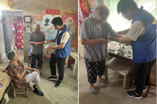 網(wǎng)格員方向霖耐心地教老人如何使用助聽器以及血壓儀,并上手幫助張大華測(cè)量了血壓,聽到血壓儀報(bào)出“血壓正常”后,網(wǎng)格員方向霖以及張大華都露出了發(fā)自內(nèi)心的笑容。