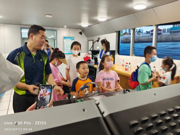 校方指導(dǎo)老師帶領(lǐng)孩子們參觀介紹了航海模擬器,大家認真聆聽老師的介紹,并來到航海器面前,根據(jù)老師的指引,親自參與模擬演練。在操作過程中緊張又興奮,玩的不亦樂乎,體驗到了航海的樂趣。
