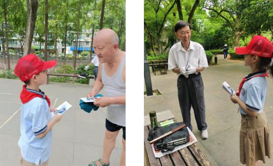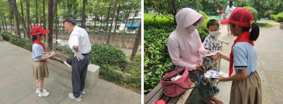 隊員們在協(xié)會志愿者的幫助下,制作了節(jié)水知識宣傳頁,他們走到公園里、道路上,給周圍居民講解節(jié)水知識,分發(fā)宣傳單頁。