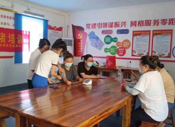 下面進(jìn)行實(shí)際演練——人工呼吸,為了防止傳染疾病可以用餐巾紙放在被救者的口上進(jìn)行施救,先進(jìn)行2次。接著再次進(jìn)行按壓和人工呼吸,如此循環(huán)進(jìn)行5次。兩位老師講解后又手把手指導(dǎo),使他們輕松掌握心肺復(fù)蘇法的操作技能?;顒?dòng)同時(shí)還指導(dǎo)村民們?cè)趺礈y(cè)量血壓血糖等簡(jiǎn)單的操作。
