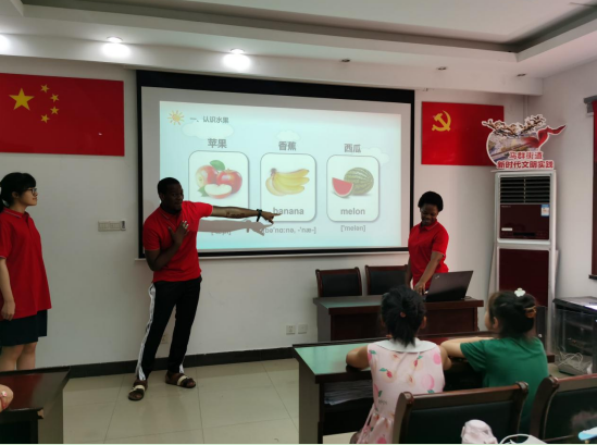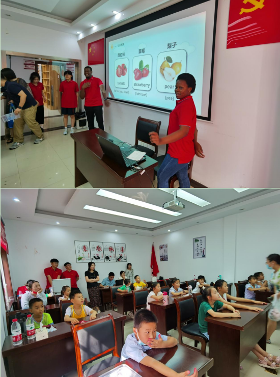 活動開始后,南工大國際教育學(xué)院的來自赤道幾內(nèi)亞的兩位留學(xué)生志愿者帶孩子們上了一堂生動有趣的英語課。兩位志愿者老師通過簡單的單詞搶答互動,拉近了與青少年的距離,在老師的帶領(lǐng)和幫助下,孩子們很快學(xué)會了英文字母歌的正確唱法。此次活動不僅提高了孩子們學(xué)習(xí)英語的興趣,也讓外國留學(xué)生對中國基層社區(qū)有了更加多元、立體的認(rèn)知。