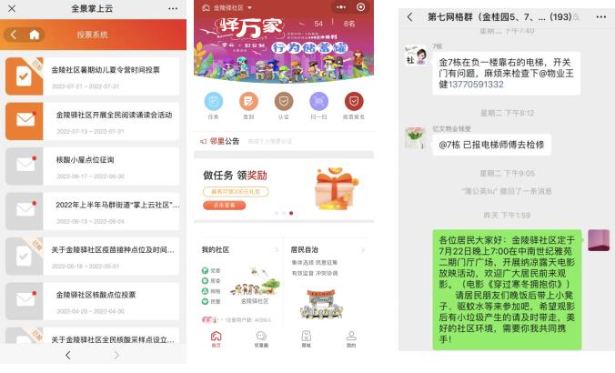 智治服務基層民生。“掌上云社區(qū)”是依托微信平臺打造的全景掌上云小程序平臺,金陵驛社區(qū)通過平臺在線處理社區(qū)事務,構(gòu)建協(xié)商議事體系并與線下網(wǎng)格化管理融合,通過“自上而下+自下而上”協(xié)商、居民參與投票等方式將社區(qū)事務真正落實落地,實現(xiàn)從經(jīng)驗治理向數(shù)據(jù)治理、從被動治理向主動治理轉(zhuǎn)變。