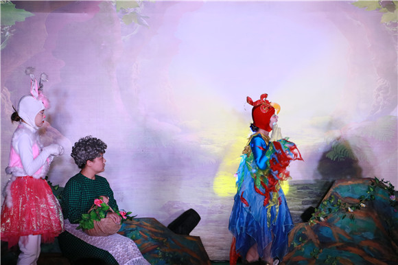 在開(kāi)場(chǎng)秀圓滿(mǎn)完成之后,本次文藝演出的重頭戲話(huà)劇《花神》正式上演,其講述了花仙子妞妞在現(xiàn)場(chǎng)小朋友的幫助下,帶領(lǐng)花世界的伙伴戰(zhàn)勝“壞蛋”大灰狼的故事。花仙子妞妞、小鸚鵡、小白兔、青蛙警長(zhǎng)、大灰狼……演出話(huà)劇中一個(gè)個(gè)立體豐滿(mǎn)的形象,塑造了一場(chǎng)斗智斗勇的正義保衛(wèi)戰(zhàn),也讓整場(chǎng)演出進(jìn)入高潮,引得現(xiàn)場(chǎng)的大朋友和小朋友們紛紛拍手叫好。“演出太好看了,最喜歡花仙子妞妞和青蛙警長(zhǎng)了,我以后也要做一個(gè)正義勇敢的人。”現(xiàn)場(chǎng)的小朋友說(shuō)道。